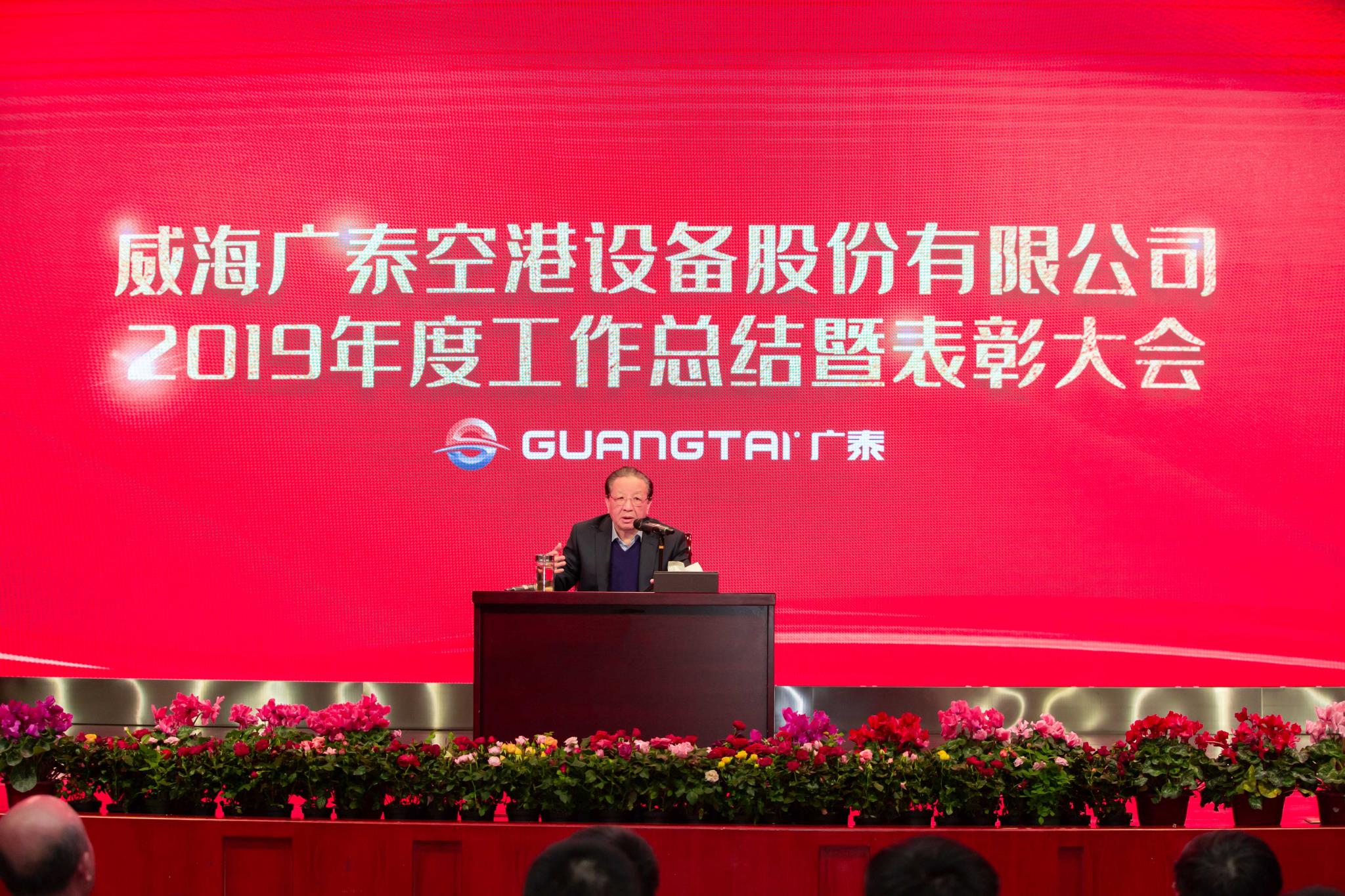 2020年1月13日下午,在集團大會精神指引下,威海廣泰空港設(shè)備股份有限公司2019年度總結(jié)暨表彰大會及2020年度工作會議在研發(fā)大樓三樓會議廳正式召開,威海廣泰集團總部、空港設(shè)備事業(yè)部、軍工事業(yè)部拓展中心、國際業(yè)務(wù)事業(yè)部、廣泰融資租賃全體人員,廣泰科技班組長及以上員工參加會議。大會由空港設(shè)備事業(yè)部副總經(jīng)理尚羽主持。